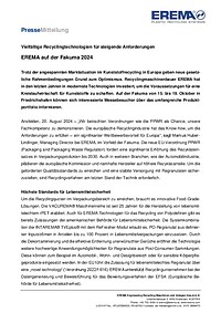 Trotz der angespannten Marktsituation im Kunststoffrecycling in Europa geben neue gesetzliche Rahmenbedingungen Grund zum Optimismus. Recyclingmaschinenbauer EREMA hat in den letzten Jahren in modernste Technologien investiert, um die Voraussetzungen für eine Kreislaufwirtschaft für Kunststoffe zu schaffen. Auf der Fakuma von 15. bis 19. Oktober in Friedrichshafen können sich interessierte Messebesucher über das umfangreiche Produktportfolio informieren.