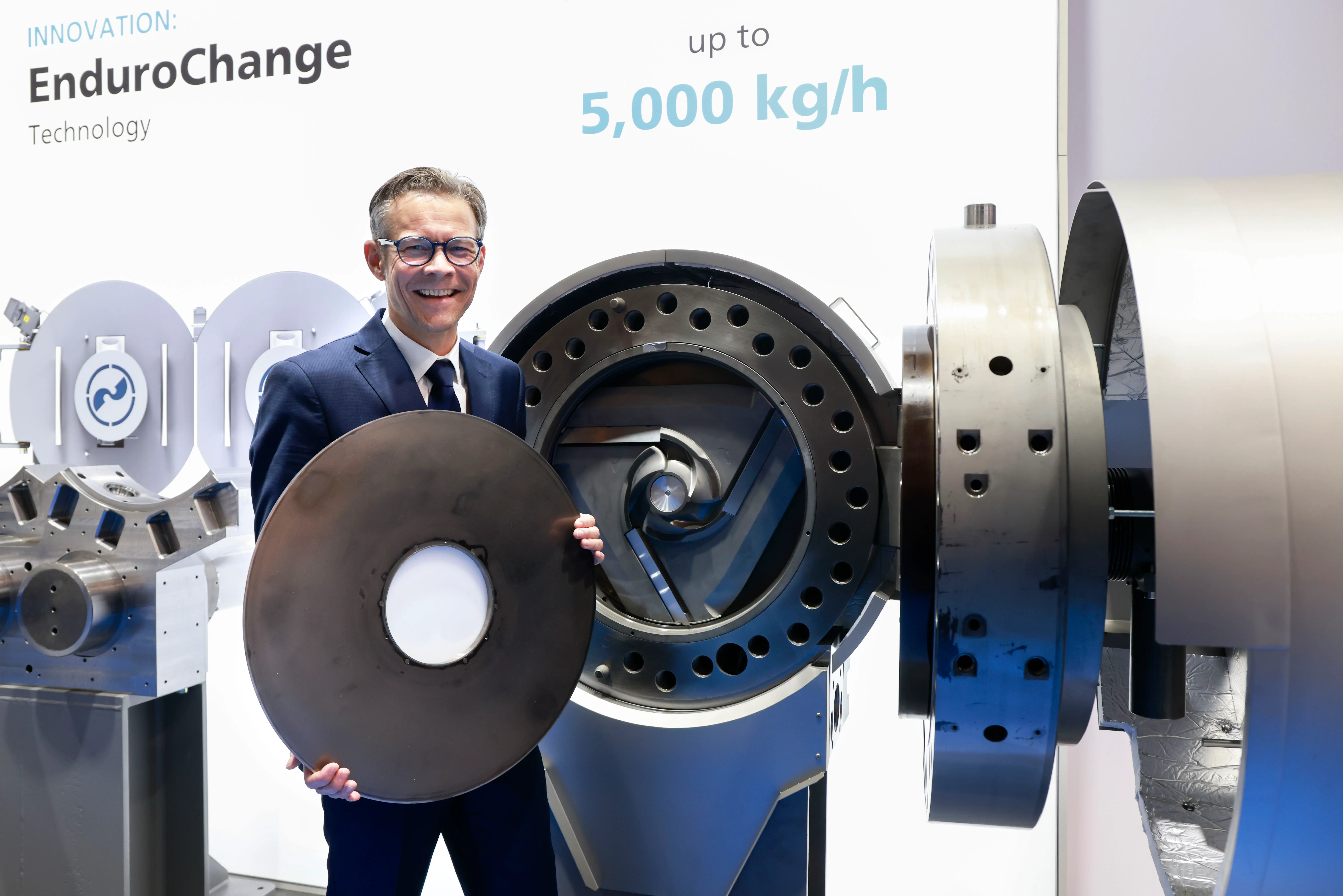 So wie bei dieser jüngsten Erweiterung arbeitet EREMA grundsätzlich kontinuierlich daran, die POWERFIL Filtrationssysteme weiterzuentwickeln und gezielt auf die Anforderungen der Kunden auszurichten um deren laufende Betriebskosten (OPEX) zu reduzieren. Im Frühjahr 2024 stellte das Unternehmen die intelligente Austragssteuerung DischargePro für die automatische Anpassung von Schwankungen im Eingangsmaterial vor, die sich seither in der Praxis etabliert hat. Erste Ergebnisse zeigen eine deutliche Reduktion von Materialverlusten durch den gleichmäßigeren Betrieb des Filters. Je nach Anlagenkonfiguration und Material liegt das jährliche Einsparungspotenzial bei 50.000 bis 70.000 Euro.