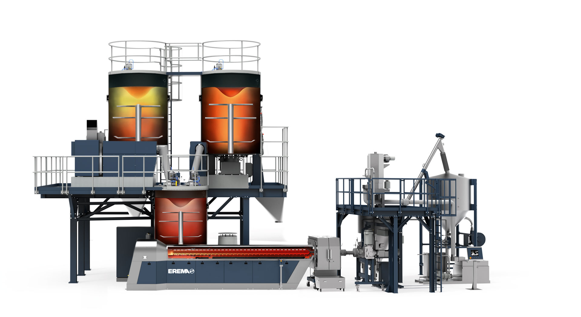 Every bottle-to-bottle recycling step combined in one compact system. Our efficient, extremely energy-saving complete systems shorten the route to top-class, food-safe rPET pellets.
