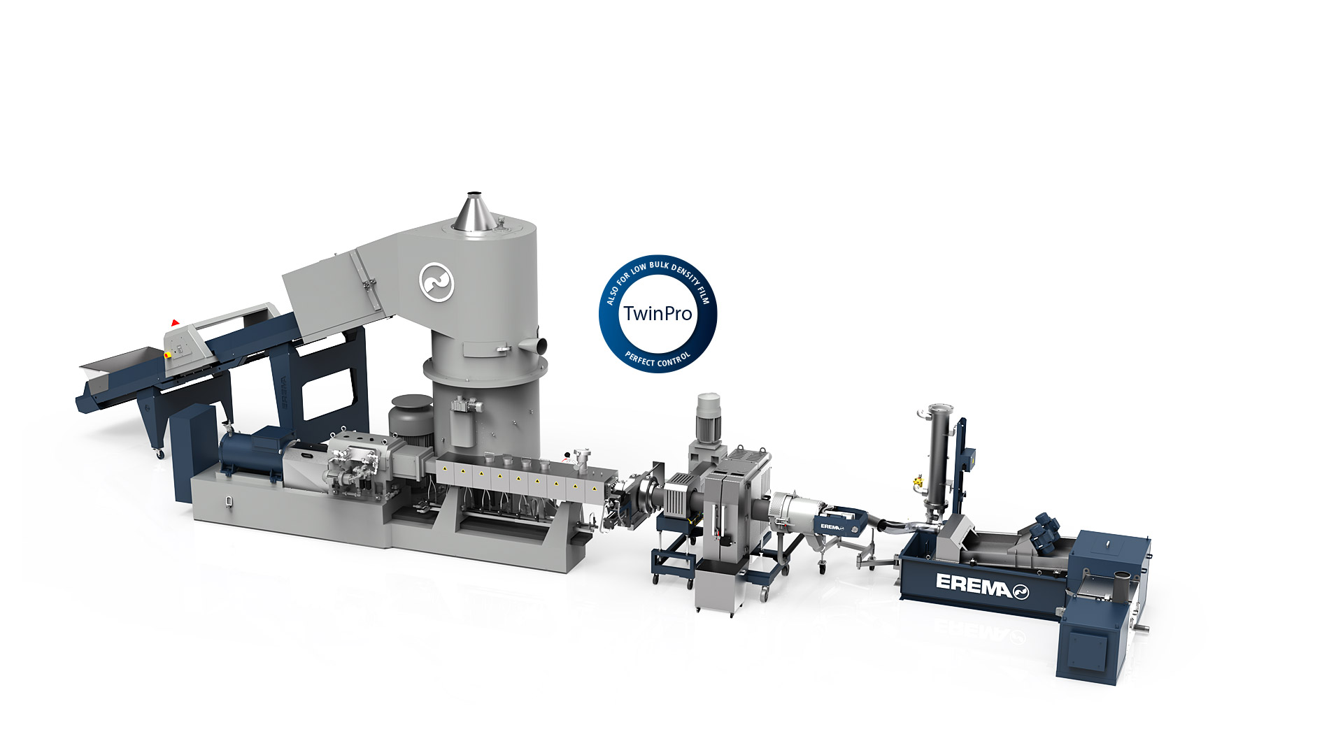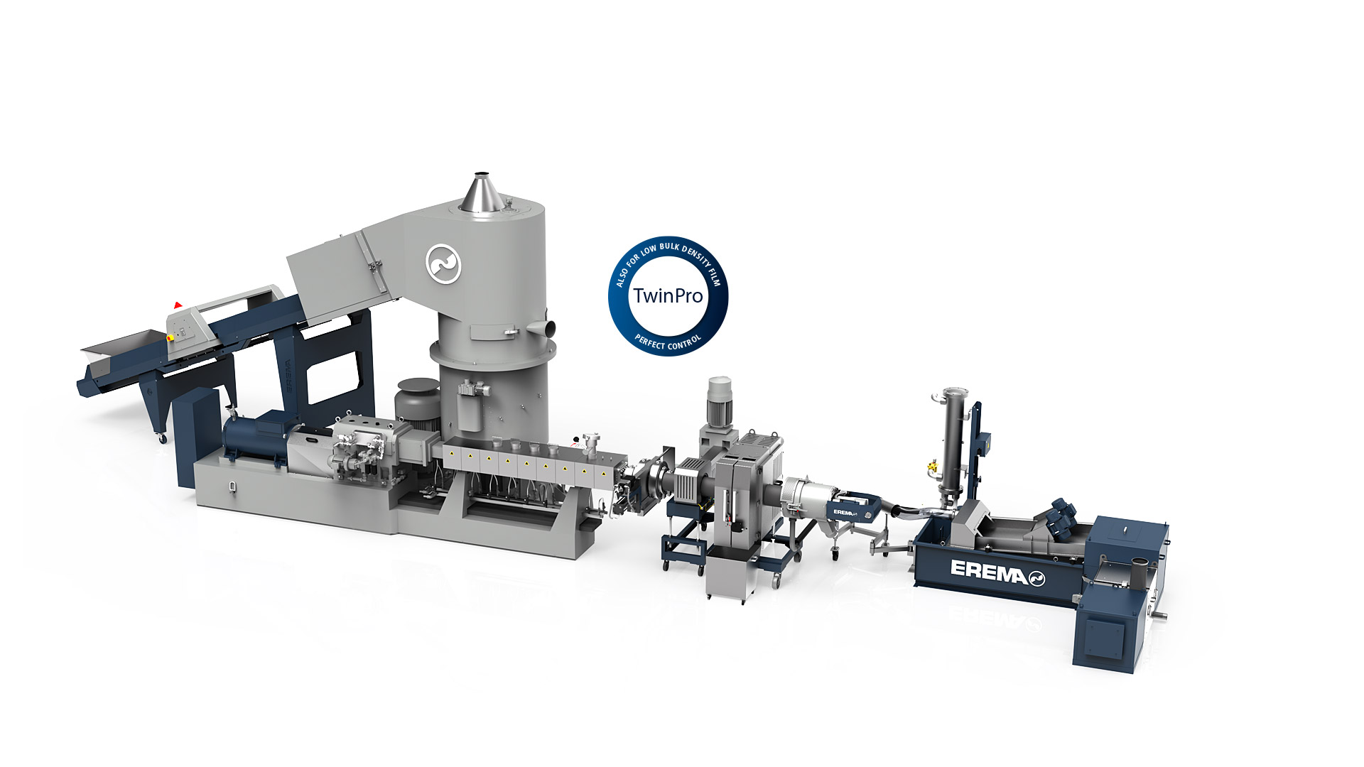 The new TwinPro system from EREMA combines all the advantages of twin screw extruders with those of the Preconditioning Unit (PCU) - proven a thousand times over - including the strengths of the unique Counter Current® technology. This innovative technology is the perfect solution for recycling production waste involving demanding multilayer films. The technology also opens up new perspectives for thin-walled post consumer regrind material.