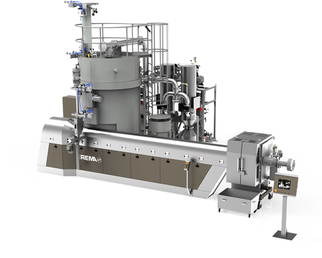 Thanks to the high degree of technology integration, the systems in the CHEMAREMA® series combine several essential process steps compactly in one plant, which would otherwise have to be solved with additional, upstream components. This saves costs both in investment and during operation and increases production efficiency. For example, the systems with PCU include the process steps of pre-drying, compacting and agglomerating the material for extrusion.