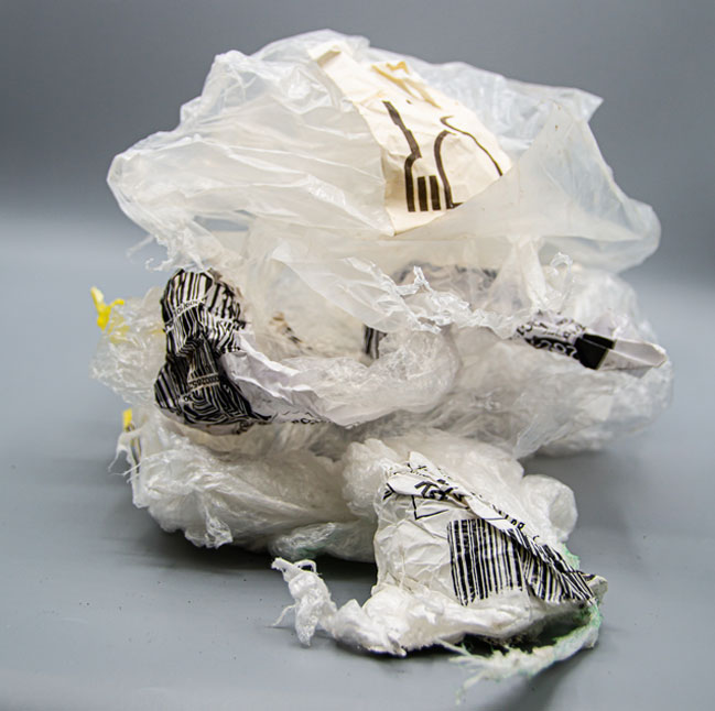 Supermarket film contaminated with labels